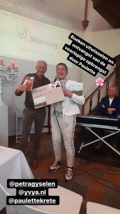13 april 2022 een prachtige donatie na de voordracht aan de ondernemersclub voor vrouwen, Novoo, in Udenhout.